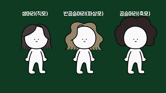 결국 모발의 형태에 관여하는 유전자의 차이에 따라서 생머리인지 곱슬머리인지, 아주 심한 곱슬머리인지가 결정되고, 유전이 90% 정도를 차지한다고 통계적으로 나와 있습니다.