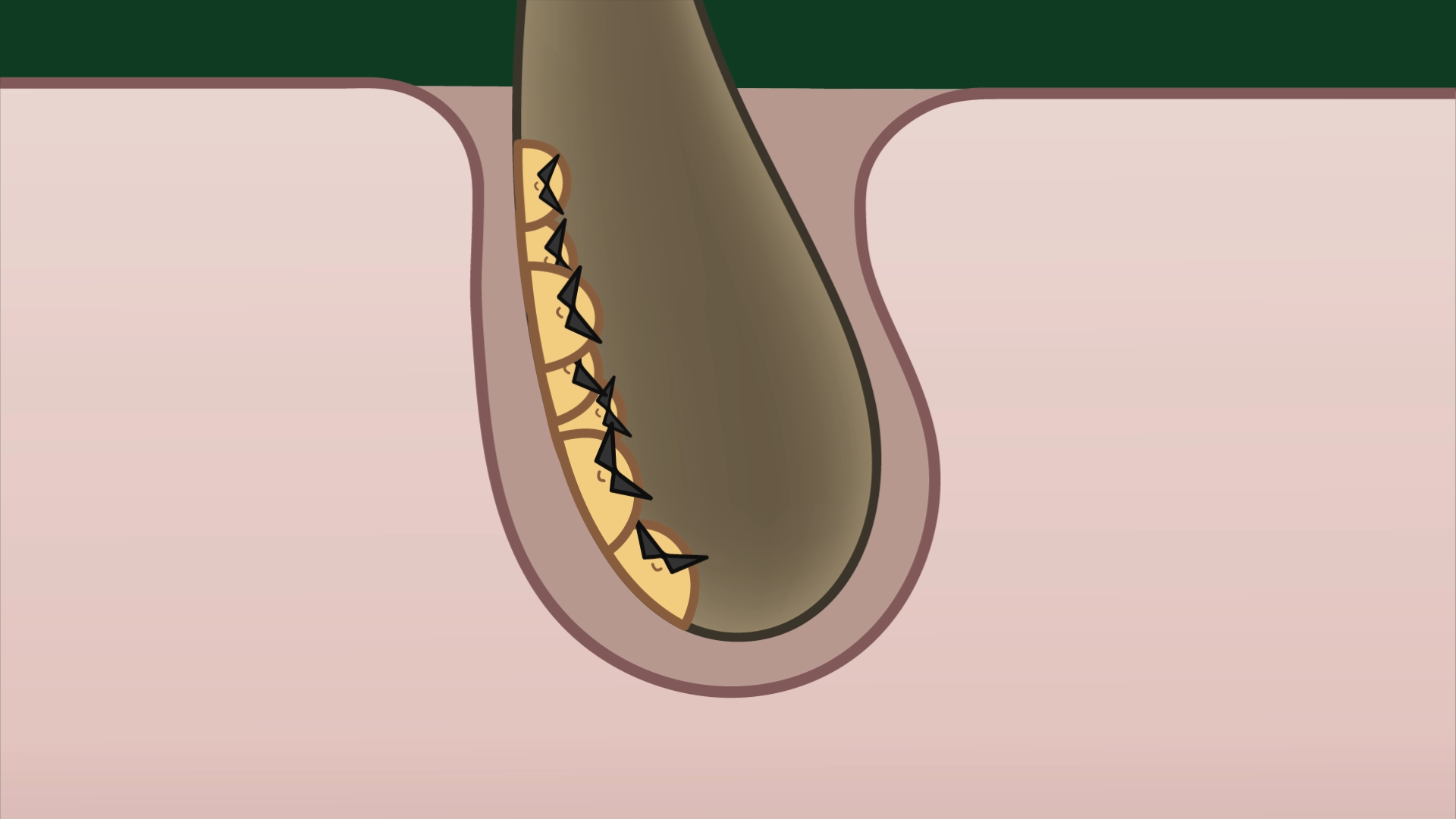 먼저 곱슬머리를 알기 위해서는 머리카락을 생성하는 기관의 구조를 파악해야 합니다. 머리카락(모발)은 모낭(hair follicle)이라는 곳에서 생성되고, 모낭의 특성에 따라서 질감이나 곱슬기 등이 결정됩니다.