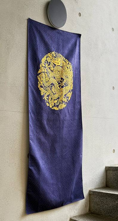 푸른색 바탕 위에 금빛 오조룡을 정교하게 새겨, 조선 시대 곤룡포를 현대적으로 풀어낸 디자인이다. 소재는 폴리에스터 80%, 폴리아미드 20%로 일반 타월보다 조직감이 촘촘하고 촉감이 부드러운 것이 특징이다. 여기에 흡수력과 건조 속도도 빨라 실용성도 훌륭하다. 크기는 1,370 x 68mm로 성인이 사용하기에 충분하다.