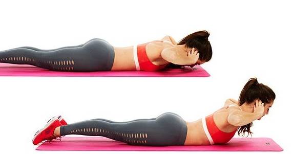 엎드린 상태에서 손을 머리 뒤에 두고 상체를 살짝 들어 올립니다. 허리를 과도하게 젖히지 않으면서 척추를 길게 늘린다는 느낌으로 진행하면, 허리 안정성과 등 근육 강화에 효과적입니다.