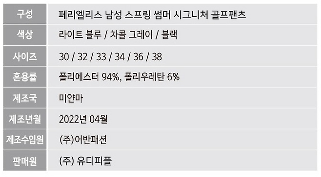 페리엘리스 골프바지는 UV Block 원단으로