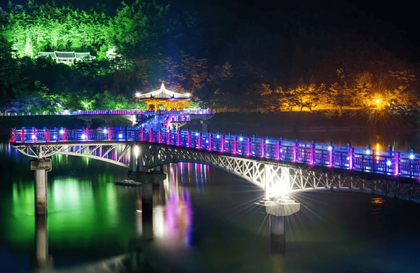 실제로 월영교는 야경이 특히 아름다워 해 질 무렵이나 밤 산책 코스로도 많은 이들이 찾고 있습니다. 다리 중간에는 정자와 작은 포토존도 마련돼 있어 추억을 남기기에 제격이니 가볍게 방문해보시는 건 어떠실까요?