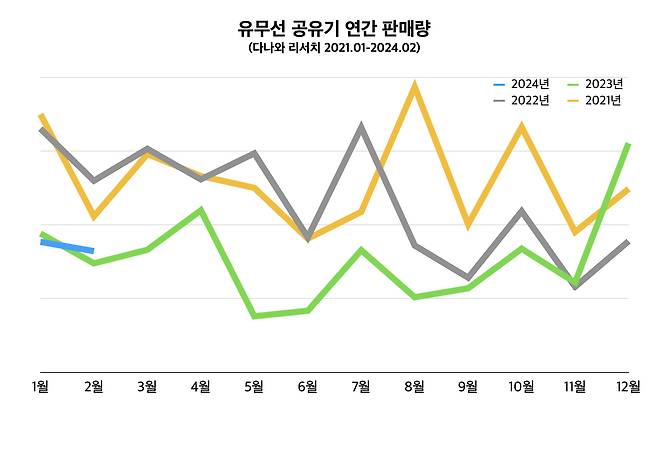 24년 2월, 최다 검색 제품은 ‘유무선 공유기’