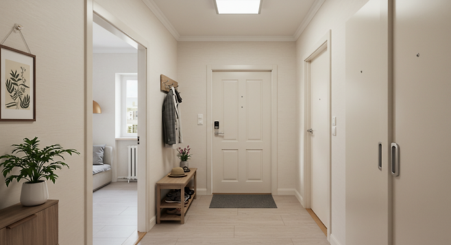 현관은 좋은 기운이 드나드는 입구다. 하지만 문 정면에 신발장이나 가구, 거울 등이 있다면 기운이 들어오자마자 막히는 구조가 된다. 좁은 공간일수록 더욱 답답한 인상을 주기에, 이 자리는 최대한 비워두는 것이 좋다.