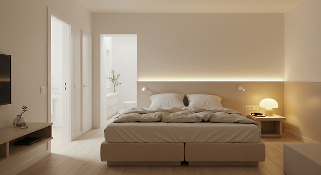 침대 헤드 위나 머리맡은 하루 중 가장 많은 시간을 보내는 공간이다. 풍수에서는 이 자리에 물건이 어수선하게 놓이면 잠재적 긴장감과 불안을 유발한다고 본다. 대신 심플한 액자나 작은 조명 정도만 두는 게 안정감을 준다.