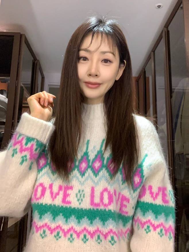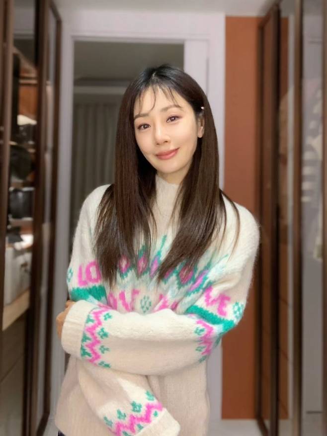 니트 특유의 포근한 질감은 오나라 특유의 맑고 깨끗한 이미지와 어우러져 전체적인 분위기를 한층 밝고 화사하게 만들어주네요.