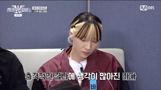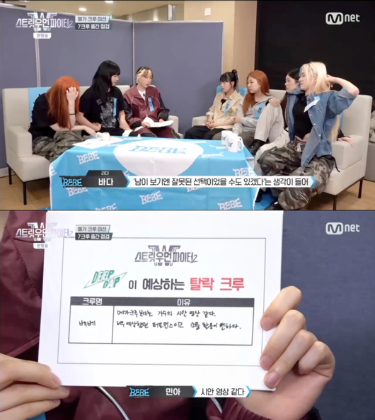[OSEN=박근희 기자] '스트릿 우먼 파이터2’ 베베가 메가 크루 미션 중간점검에서 탈락 후보로 지목 됐다.