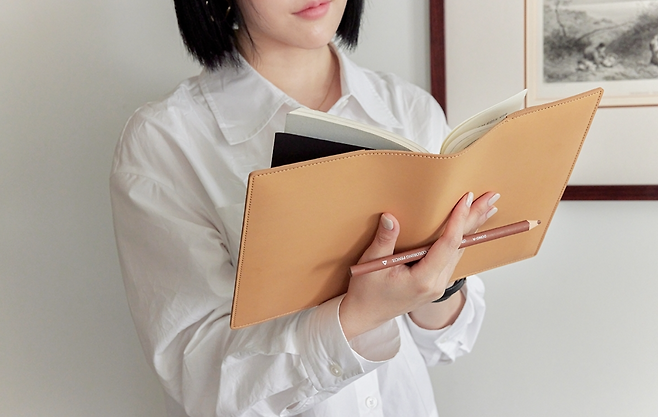 시중에 판매되는 북커버는 귀엽거나 화려한 디자인이 많은데 커먼누보 북커버는 가죽으로 제작해 깔끔하고 세련된 느낌의 디자인이 매력적이다. 최고급 비건 레더 소재로 제작해 오염 물질이 묻으면 물티슈로 쓰윽 닦으면 된다. 커버 안 쪽에는 수납 공간과 밴드가 있어 필기 도구를 보관하거나 책갈피, 북스토퍼 용도로 활용할 수 있다. 사이즈에 따라 M, A5, L 사이즈 3종으로 구성되어 있어 주로 읽는 책에 따라 사이즈를 선택하면 된다.
