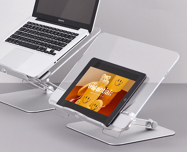 프리미엄 독서대로 추천하는 제품은 노르잇 투명 독서대 무소음 회전형이다. 시트지를 붙이거나 저가 원목 소재로 제작한 일반적인 독서대와 다르게 아크릴과 메탈 프레임으로 만들어 고급스러운 디자인과 튼튼한 내구성을 보여준다. 사용자가 원하는 높이와 각도를 무소음으로 조절할 수 있고 최대 10kg까지 지지할 수 있다. 고정핀을 뒤로 깔끔하게 숨길 수 있어 노트북이나 태블릿 사용할 때 깔끔하고 편하다.