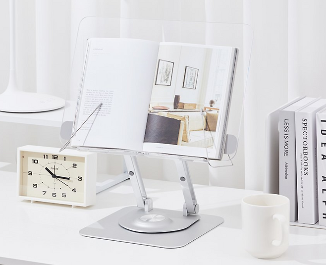 독서대 아이템이 독서할 때 편하다는 건 누구나 아는 사실이지만 독서 만족도를 더 높이고 싶다면 일반 독서대가 아니라 높이 조절과 회전 기능까지 있는 프리미엄 독서대를 추천한다. 높이 조절과 회전 기능이 있으면 사용자의 취향에 맞는 높이와 각도로 세팅할 수 있어 장시간 독서도 무리 없이 가능하게 만들어 준다. 독서를 하지 않을 때는 책 대신 노트북을 놓고 적당한 높이와 각도로 세팅해 사용할 수 있어 독서대의 활용도를 높일 수 있다.