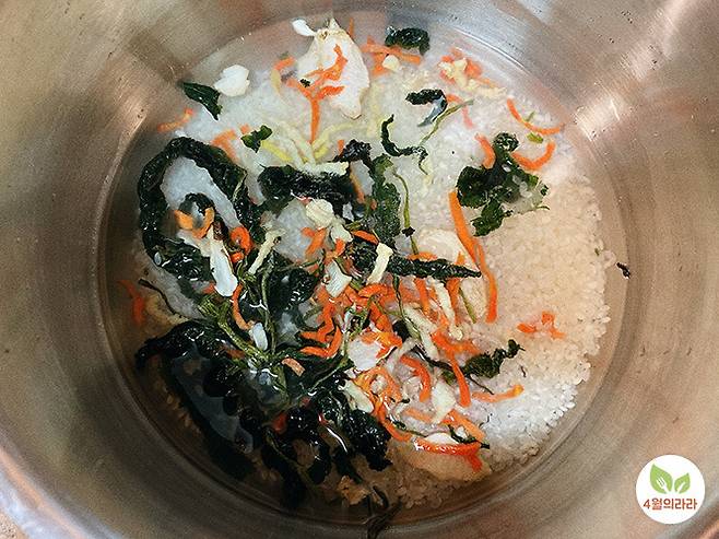 곤드나물 팩은 가볍게 헹군 뒤 함께 밥솥에 넣어 밥을 짓습니다. (압력밥솥/일반밥솥 모두 가능)