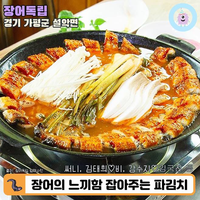 두 번째는 근교 여행지로 손꼽히는 경기도 가평에 있는 <장어독립>입니다! 숯불향 가득한 장어구이 뿐만 아니라 시그니처인 '파김치 장어전골'도 있고 장어정식도 1인분 단위로 판매되고 있어요.