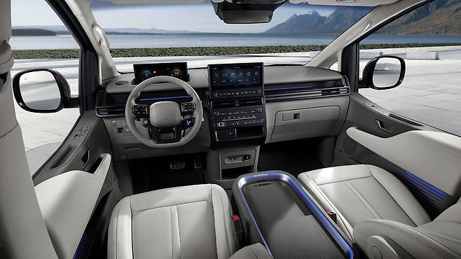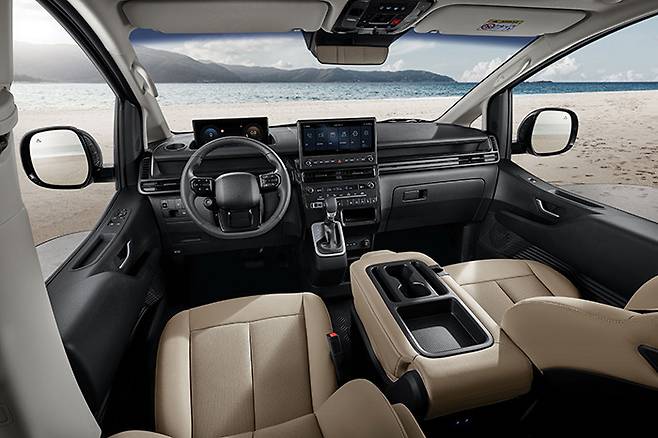 더 뉴 스타리아의 가장 큰 변화는 외관이 아닌 실내에서 비롯된다. 현대차는 이번 부분변경을 통해 기존 모델에서 가장 많은 지적을 받았던 인포테인먼트 시스템과 조작 편의성 문제를 전면 수술했다. 기존 10.25인치 단일 디스플레이에서 12.3인치 통합 클러스터·인포테인먼트 일체형 디스플레이로 확장됐으며, 최신 ccNC 인포테인먼트 시스템이 이식됐다. 특히 터치스크린 과잉 시대에 역행하는 듯한 '물리 버튼의 부활'은 실사용자들의 호평을 이끌어냈다. 오랜 기간 불편함으로 지적받아온 칼럼식 기어 레버 전환 또한 승객석 공간 활용성을 한층 높이는 결정적 변화로 작용했다.