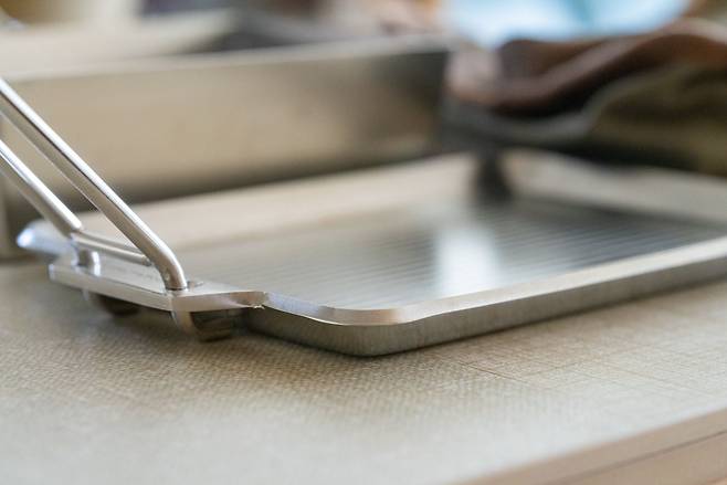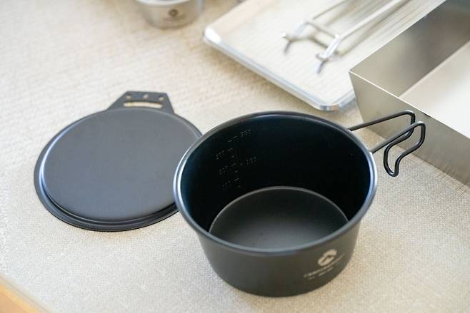 구성품들 중에 제일 품질이 좋은건 팬으로도 쓰고 반합의 뚜껑 용도로도 쓰는 이 스테인레스 판입니다.
