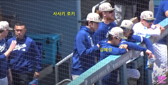 아직 경기 초반인 것 같다. 홈 팀 다저스의 덕아웃은 여유롭다.