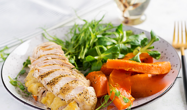 오늘 저녁, 닭 150g + 고구마 150g으로 첫 단추를 끼워 보세요!
