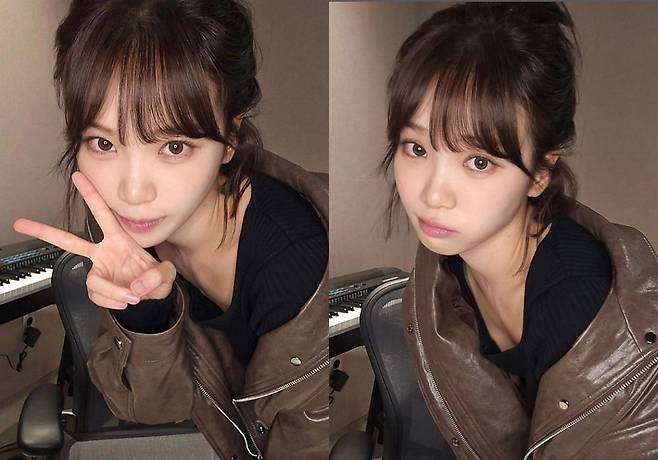 공개된 사진에는 연습실에 앉아 카메라를 향해 다채로운 포즈를 취하는 김채원의 모습이 담겼다.