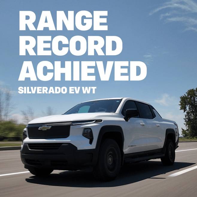 제너럴 모터스(GM)가 2026년형 쉐보레 실버라도 EV 맥스 레인지 워크 트럭으로 전기차 역사에 새로운 이정표를 세웠다. 1회 충전 주행거리 1,059.2마일, 즉 약 1,705킬로미터를 달성하며 기네스 세계 기록을 갈아치운 것이다. 이는 미국 전기차 기업 루시드 모터스가 올해 여름 세운 기존 기록 749마일(약 1,205킬로미터)을 무려 500킬로미터 이상 뛰어넘은 수치다.