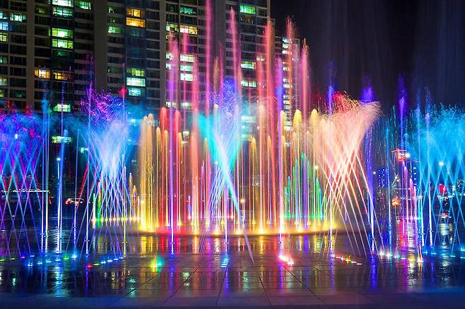 다대포해수욕장 입구에 설치된 분수로, 10월까지 운영될 예정인데요. 바닥분수 면적이 2,538㎡로 ‘세계 최대 바닥분수’로 기네스 인증받았다고 합니다.