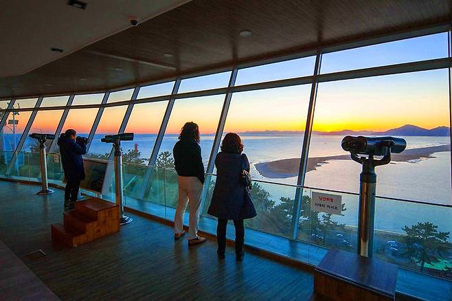 숨겨진 인생샷 핫플레이스로 일몰 때 꼭 가봐야 할 곳입니다. 낙동강과 바다가 만나는 지점과 함께 붉게 물든 노을과 낙조를 감상할 수 있는데요.