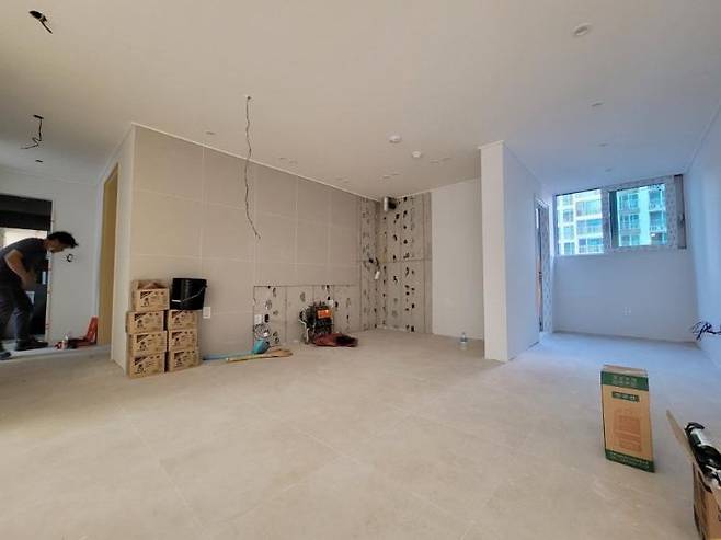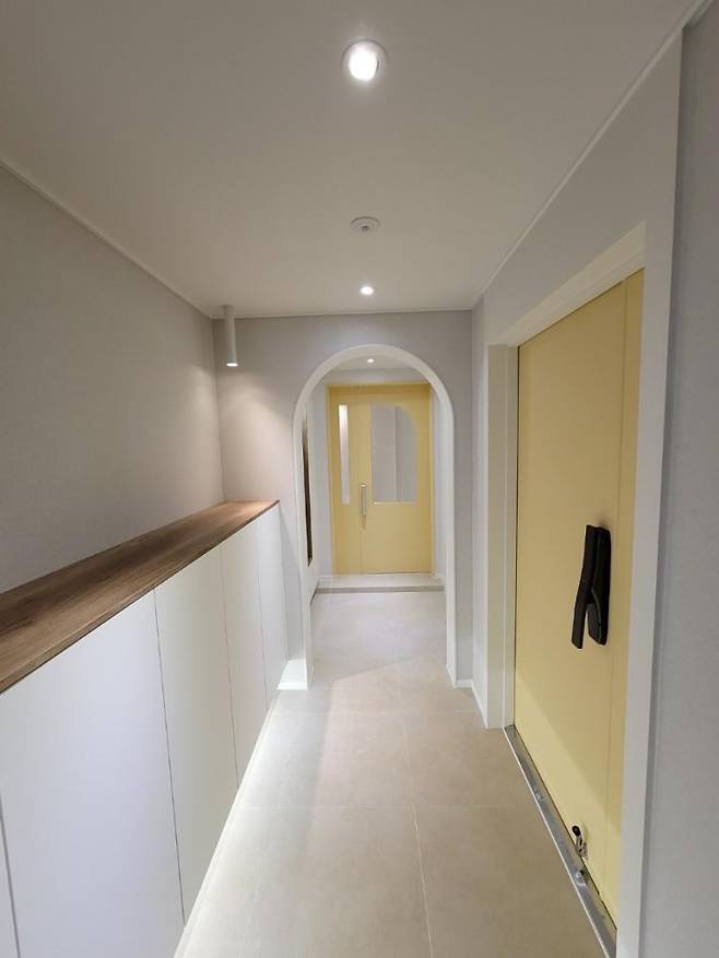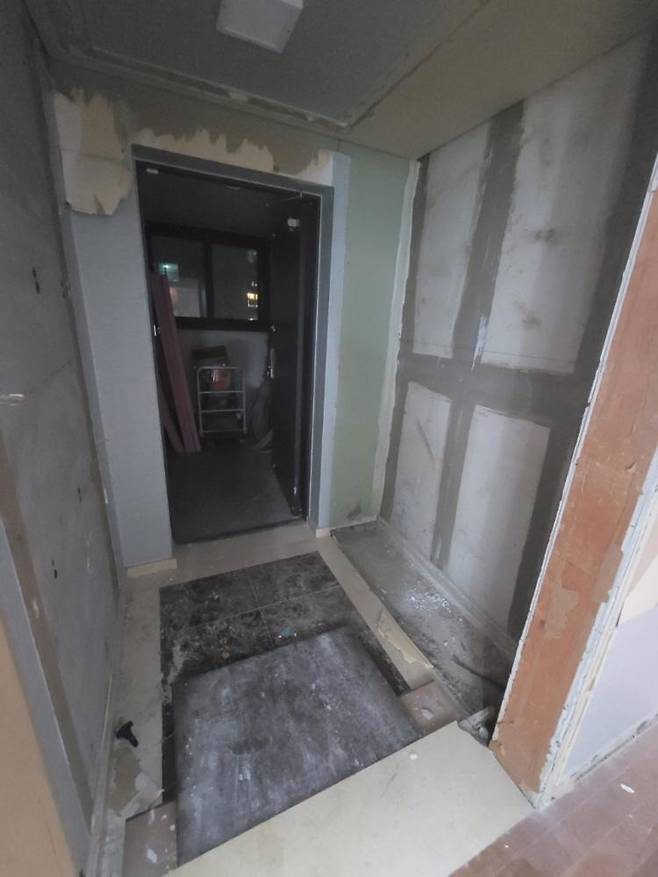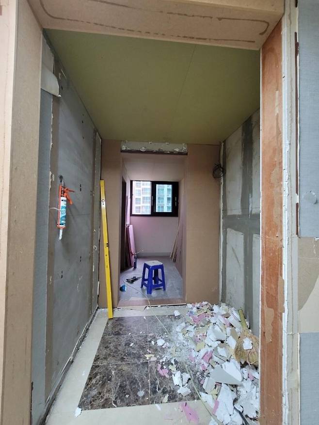 이렇게 방화문 끝자락에서 집 안을 봐도 굉장히 넓은 느낌이죠? ㅎㅎ 공사가 마무리되니까 진짜 이 공간이 넓긴 하더라고요.