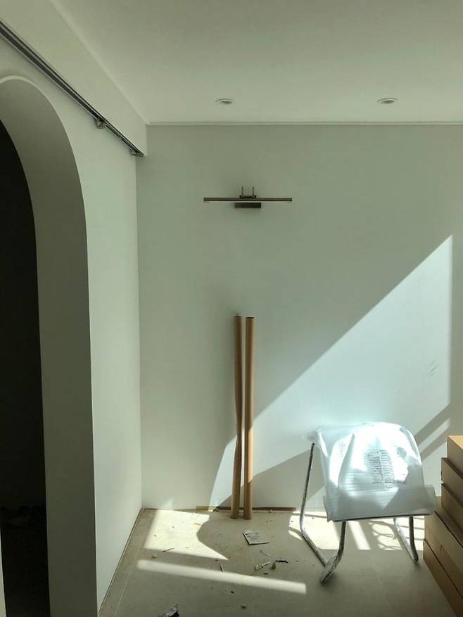 그리고 자세히 보면 침대헤드가 들어갈 벽의 색감과 나머지 벽의 색감이 다르답니다😉