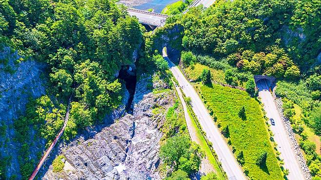 계절이 바뀔 때마다 단풍과 녹음, 설경이 번갈아 물들지만, 무엇보다 시선을 사로잡는 것은 자연이 빚어낸 거대한 석문과 깊이 18.2m에 달하는 소다. 바로 강원특별자치도 태백시 동점동 498-123에 자리한 태백 구문소 이야기다.