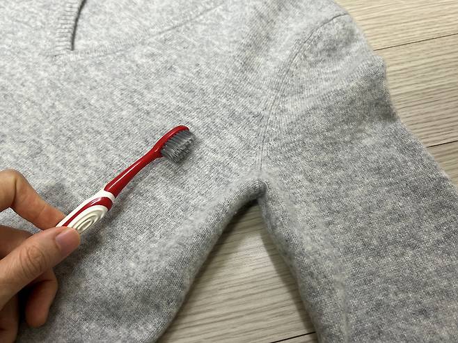칫솔로 보풀 제거할 때 주의할 점은 옷감에 직접적으로 닿게 하지 않는 것입니다. 칫솔이 옷감에 세게 쓸리면 옷감 자체가 망가질 수 있기 때문입니다.