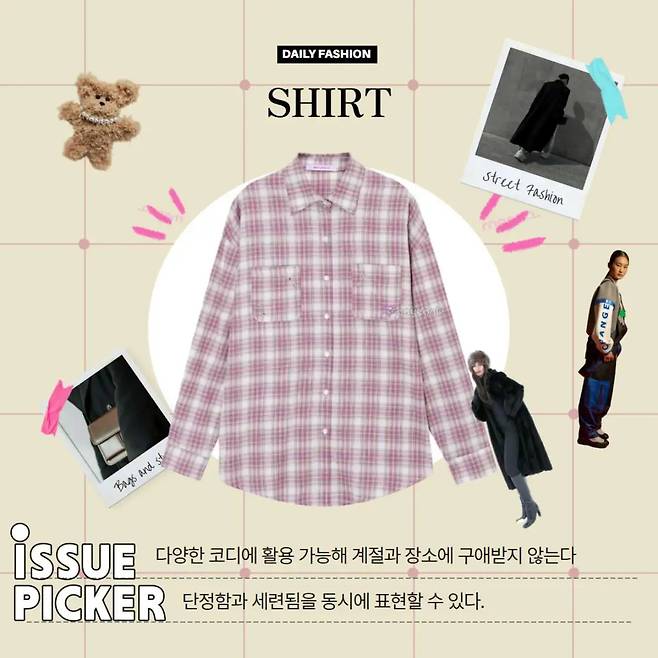 셔츠는 계절과 장소를 가리지 않고 활용할 수 있는 옷이다. 깔끔한 실루엣과 단정한 이미지로 오피스룩은 물론, 단추를 풀어 아우터처럼 입거나 안에 티셔츠를 매치해 캐주얼하게 연출하는 등 다양하게 활용할 수 있어 꾸준히 많은 이들의 사랑을 받고 있다.