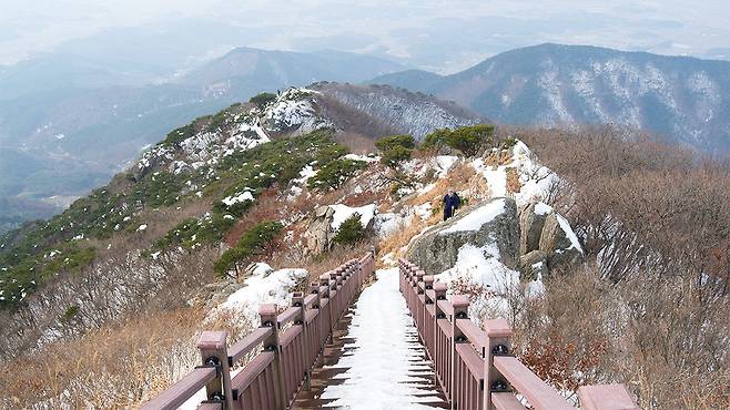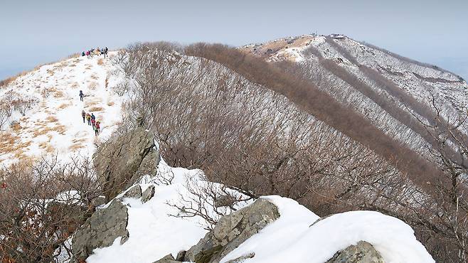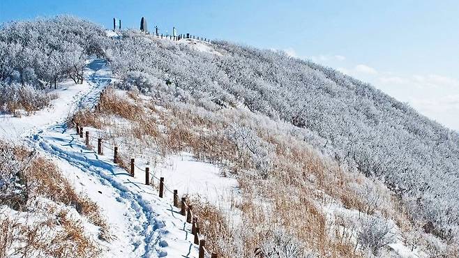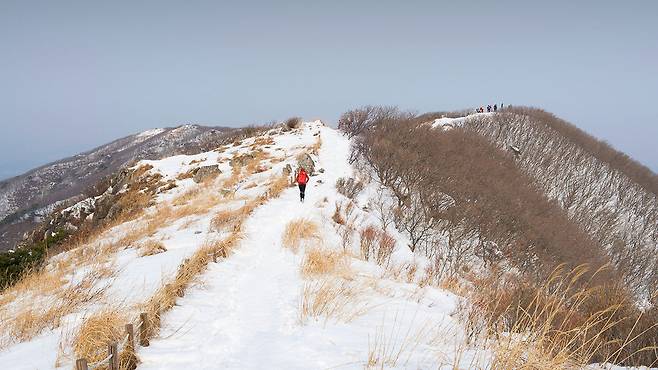 가을엔 황금 억새밭으로 유명하지만, 겨울에는 그 억새 위에 눈이 쌓이며 환상적인 하얀 능선으로 변모합니다.