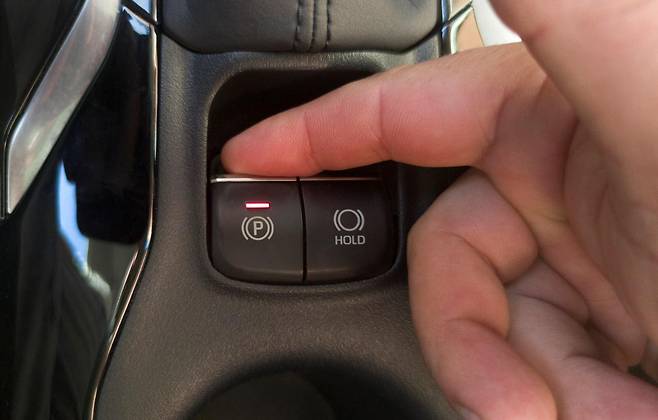 보통 EPB는 한 번 스위치를 당기면 작동하지만, 4초 이상 길게 당기고 브레이크 페달을 밟으면 브레이크 페달이 더 깊게 들어가며 더욱 강력하게 고정합니다.