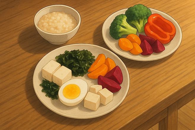 • 단백질(달걀·두부) : 근육을 지키고 오전 내 포만을 유지—근감소·기력저하 예방.