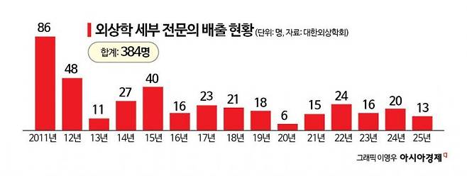 하지만 2025년 2월 현재 의료 현장에서 외상 전담 전문의로 근무 중인 의사는 약 188명, 전국적으로 200명에도 못 미치는 것으로 파악된다. 신규 지원자는 줄어드는 반면 기존에 외상학 세부전문의 자격을 따고도 포기하는 의사가 늘고 있기 때문이다. 외상학 세부전문의 자격은 한 번 취득한 후에도 5년마다 갱신해야 하는데 올해는 전체 갱신 대상자 중 20.7%만이 지원해 역대 최저치를 기록했다.