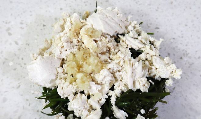 톳의 비린맛은 마늘이 잡아주는데 너무 많이 넣으면 톳의 고유한 맛을 해칠 수 있으니 적당히 넣어야 합니다.