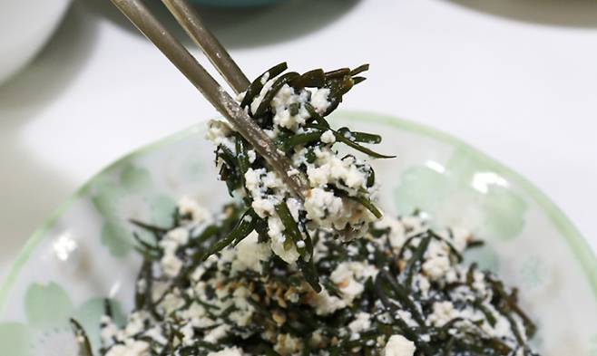 톳은 식이섬유가 풍부하며 칼로리가 낮습니다. 단백질이 많은 두부와 함께 먹으면 속도 편하고 좋습니다.