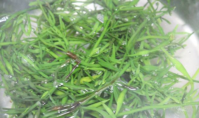 생톳은 이물질을 제거하고 흐르는 물에 여러 번 헹궈줍니다.