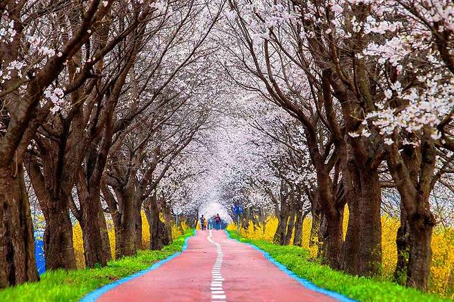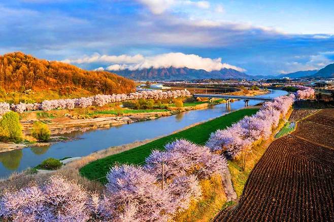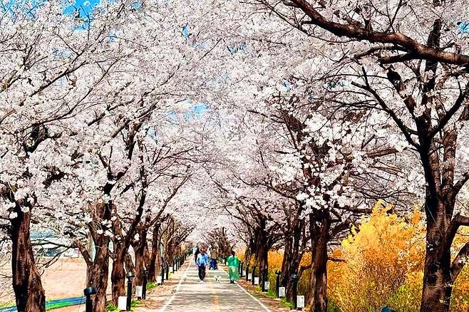 수령 20~30년 된 벚나무 4,300여 그루가 줄지어 서 있는 보청천 벚꽃길은 자동차가 진입할 수 없는 산책로로, 걸어 다니거나 자전거를 타며 천천히 봄을 만끽하기에 최적의 장소입니다.