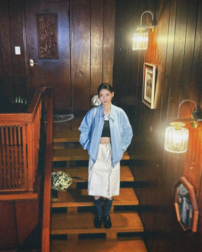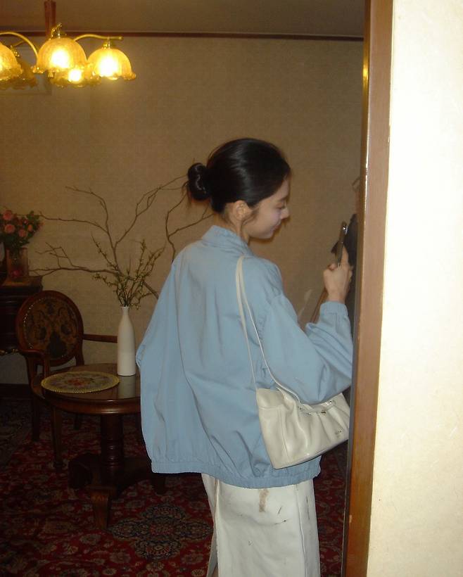 조명이 은은하게 내려앉은 빈티지한 공간 속에서, 공승연은 자연스러운 무드를 담아낸 로우 번 헤어스타일을 선보이고 있었어요.
