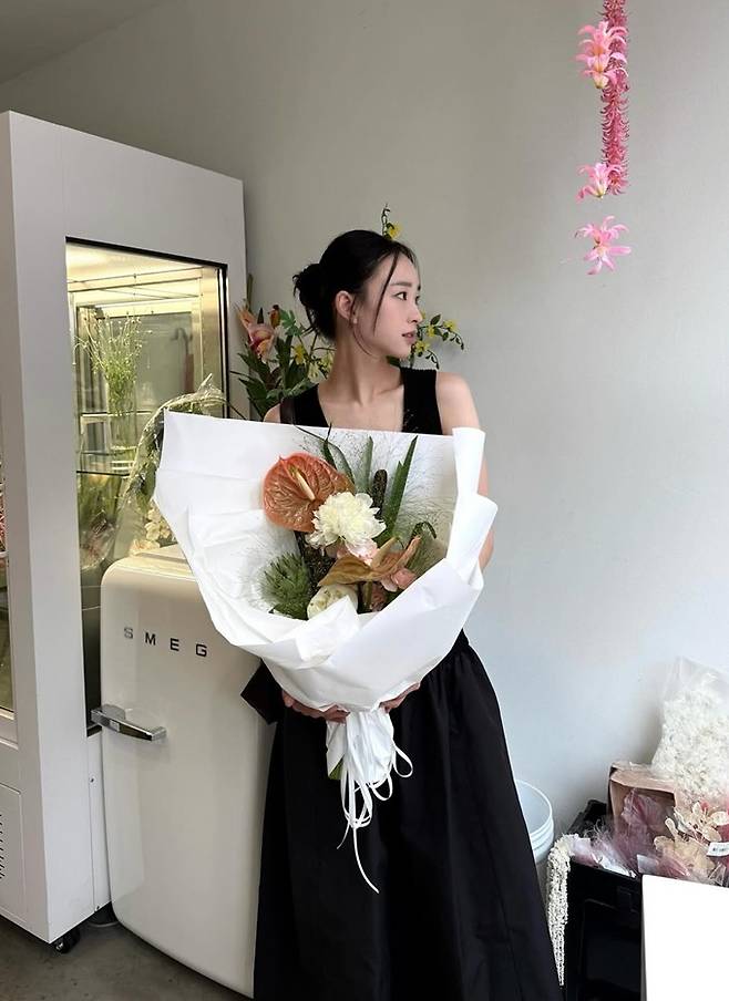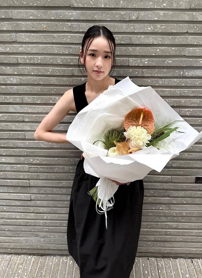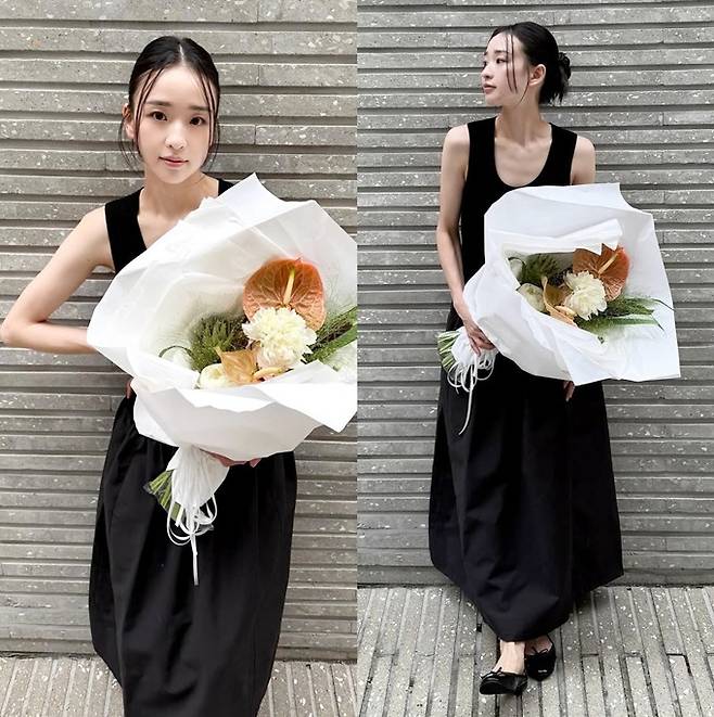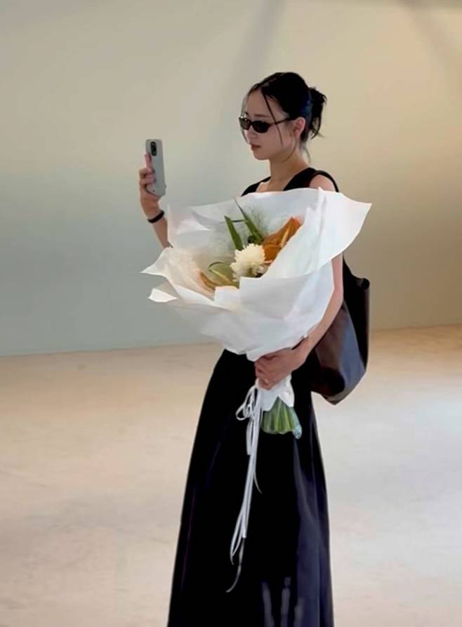 공개한 사진에서 손연재는 플라워 부케와 함께 우아한 블랙 스타일링으로 눈길을 사로잡았다.