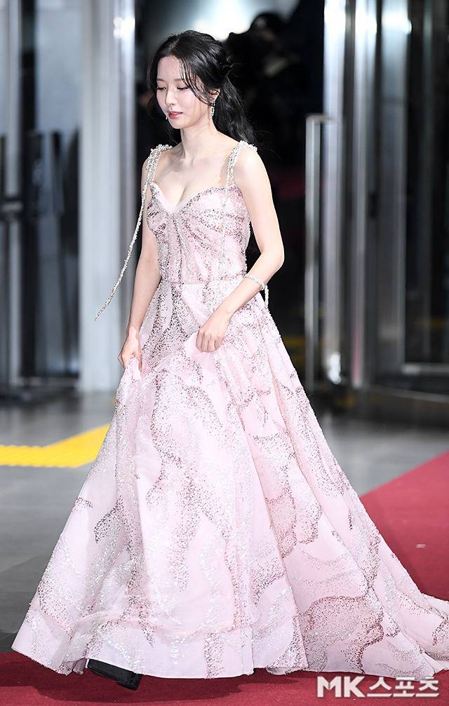김지연은 시선을 사로잡는 핑크 시퀸 드레스를 입고 등장하며 우아함의 정수를 보여줬습니다.