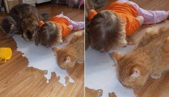 멀쩡한 컵에 있던 우유를 바닥에 쏟아버리더니