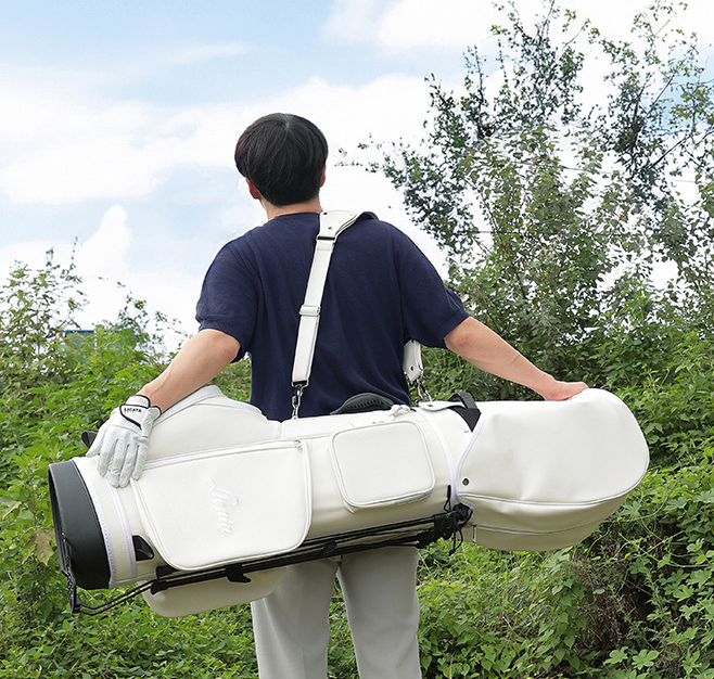 오묘한 컬러의 자수로 고급미를 더한 골프백이