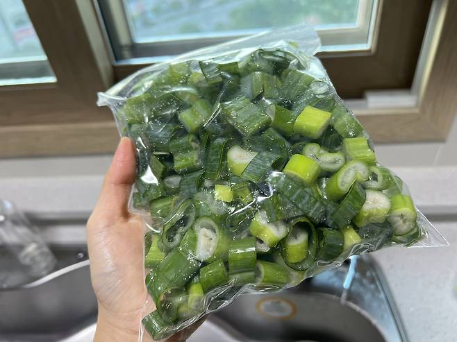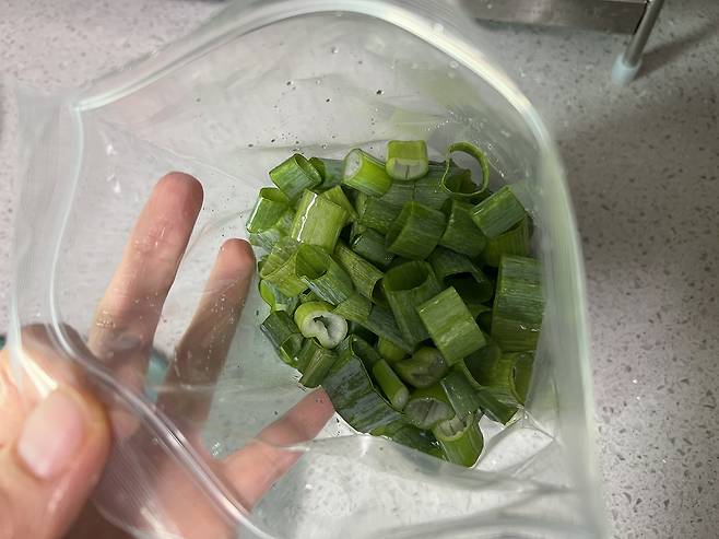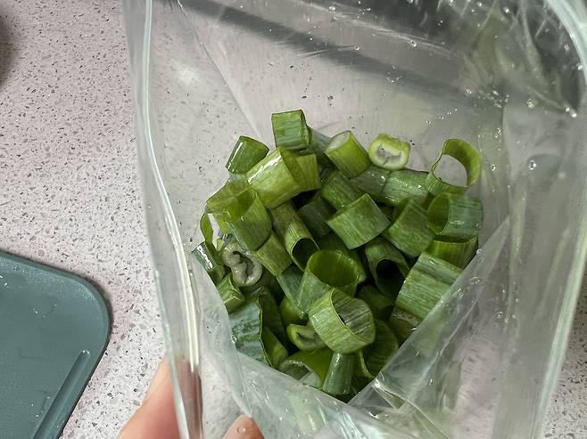 2. 파를 먹기 좋은 크기로 송송 썰어 밀폐용기나 지퍼백에 담아줍니다.