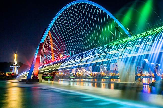 1993년 대전엑스포 개최 때 설계된 다리로 한밭수목원과 엑스포과학공원을 연결하고 있습니다. 웅장한 규모와 예술적인 라인, 화려한 분위기를 배경으로 사랑하는 사람과 거닐어보세요.