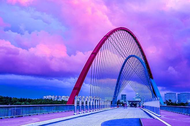 1993년 대전엑스포 개최 때 설계된 다리로 한밭수목원과 엑스포과학공원을 연결하고 있습니다. 웅장한 규모와 예술적인 라인, 화려한 분위기를 배경으로 사랑하는 사람과 거닐어보세요.