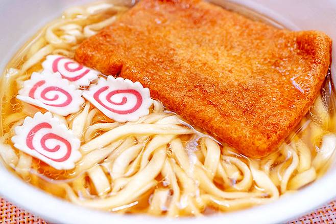 우동에는 넓적한 크기의 유부가 들어 있는 게 특징인데요.