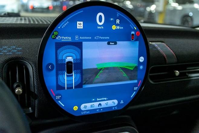 삼성과 협업한 240mm 원형 OLED 디스플레이는 시인성과 조작성이 뛰어나며, 미니 오퍼레이팅 시스템 9을 기반으로 하는 직관적 UI가 돋보입니다. 국내 전용 T맵 내비게이션은 실시간 정보를 반영해 최적 경로를 안내해 줍니다.