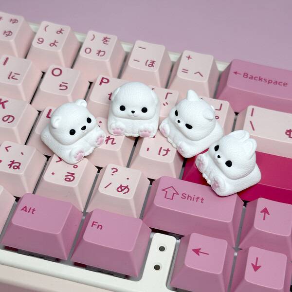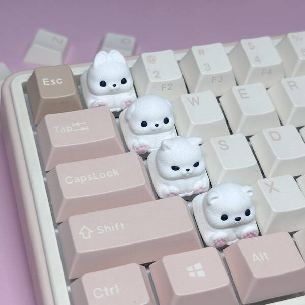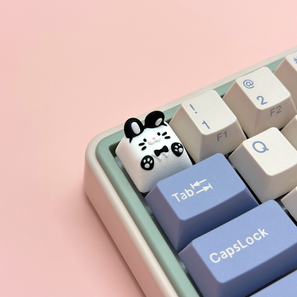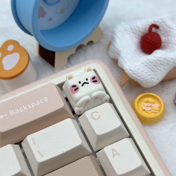 고양이가 웅크리고 있는 일명 '식빵 굽는 자세'를 보고 이걸 키캡으로 표현해 보자 했어요. 유리 테이블 위에서 웅크린 모습을 아래에서 보면 그 자세와 발 젤리 모양이 잘 보이거든요. 이런 모습을 어떻게 아티산에 녹여낼 수 있을까 많이 고민하며 대중적인 밈과 문화도 적극적으로 녹여내고 있습니다.