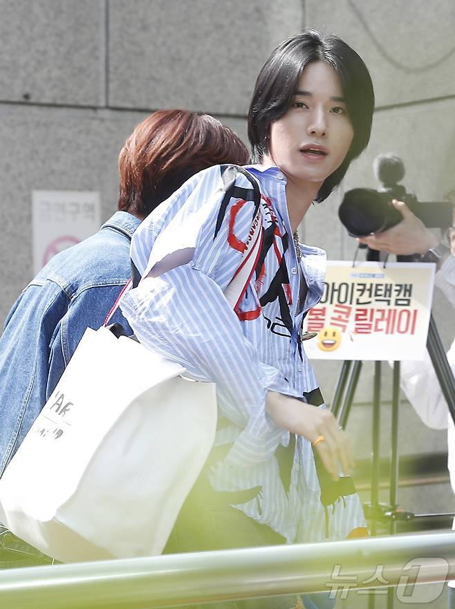 (서울=뉴스1) 권현진 기자 = 그룹 JO1(제이오원) 사토 케이고가 음악방송 '뮤직뱅크'(뮤뱅)를 위해 24일 오전 서울 영등포구 KBS 신관 공개홀에 도착해 스튜디오로 이동하고 있다. 2024.5.24/뉴스1