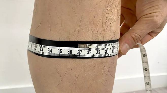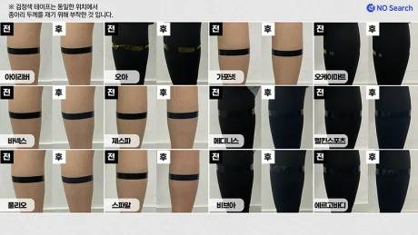 제품 사용 전, 사용 후, 사용 1시간 후의 종아리 둘레를 측정해 종아리가 얇아지는 효과가 있는지, 압력이 강한 제품의 마사지 효과가 더 좋은지 확인해 보았습니다.